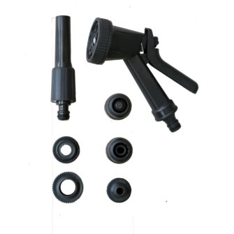 De Tasman wordt geleverd met een tuut en een spuitpistool met 5 standen. Op de tuinslang mogen zit 50m tuinslang. Daardoor geraakt u werkelijk in elke hoek van de tuin voor het bewateren. Hij is verkrijgbaar in het wit en in het zwart.