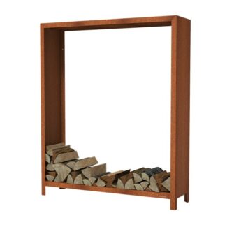 Unsere 1,8 m hohe Wandhalterung aus Cortenstahl-Holz ist in Rost oder schwarzer Pulverbeschichtung erhältlich. Das Holzlager ist in einer Breite von 80 bis 150 cm erhältlich.