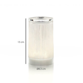 Die Imagilights Plisee Glitter LED-Tischleuchte ist eine zylindrische kabellose Tischleuchte aus dem DJOBIE Sammlung. Elegant verarbeitet mit einem Muster im Inneren, das ein schönes Funkeln auf dem Lichttisch erzeugt. Hergestellt in PMMA-Glasimitat. Die Imagilight Tischleuchten sind DER Hingucker in vielen Bistros und Restaurants, aber auch in Privathaushalten sieht man sie immer häufiger, zum Beispiel im Innenbereich des Poolhauses oder auf der Tisch im Garten.