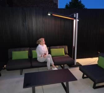 Auch diese Einstellung kann problemlos mit dem mitgelieferten vorgenommen werden Fernbedienung. Die Terrassenheizung hat auch Räder und ist daher leicht zu bewegen. es gibt auch 2 eingebaute LEDs (2 x 3 Watt) Lampen, deren Stärke Sie regulieren können. Das Bali faltbare Infrarot ist außerdem spritzwassergeschützt (IP 34 – mehr Infos zur IP-Klasse ) und hält einem Regenschauer stand.