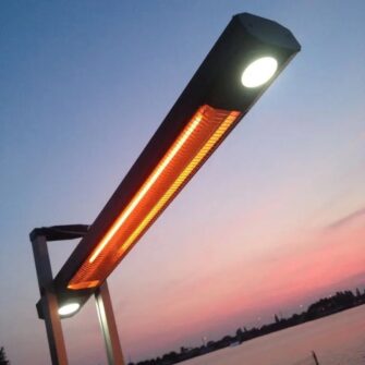 Neigbarer Infrarot-Terrassenheizstrahler mit 2 LED-Lampen