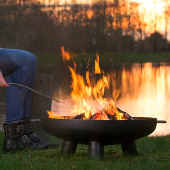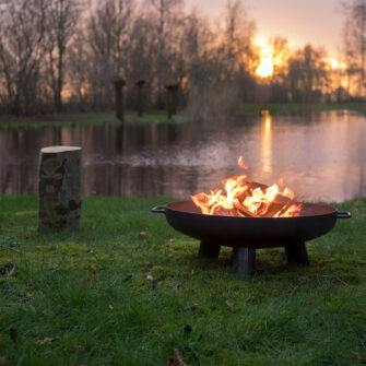 Da die Feuerschale aus 2 mm dickem Stahl besteht, können Sie darauf verschiedene Holzscheite für ein großes und gemütliches Feuer verbrennen.