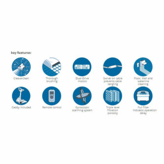 - Betrouwbaar en eenvoudig in gebruikt – geavanceerde technologie zorgt voor een zeer precieze scanning van de zwemvijver en efficiënte reiniging, ook in hoeken en afrondingen, zelfs op kiezel vloeren. Ingebouwde sensoren herkennen de muren en zorgen voor een volledige reiniging van het bad zonder onderbreking.