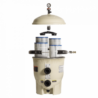 Cartridge filters for efficient and sustainable filtering of swimming pool water. This filter system is the most economical swimming pool filter system.