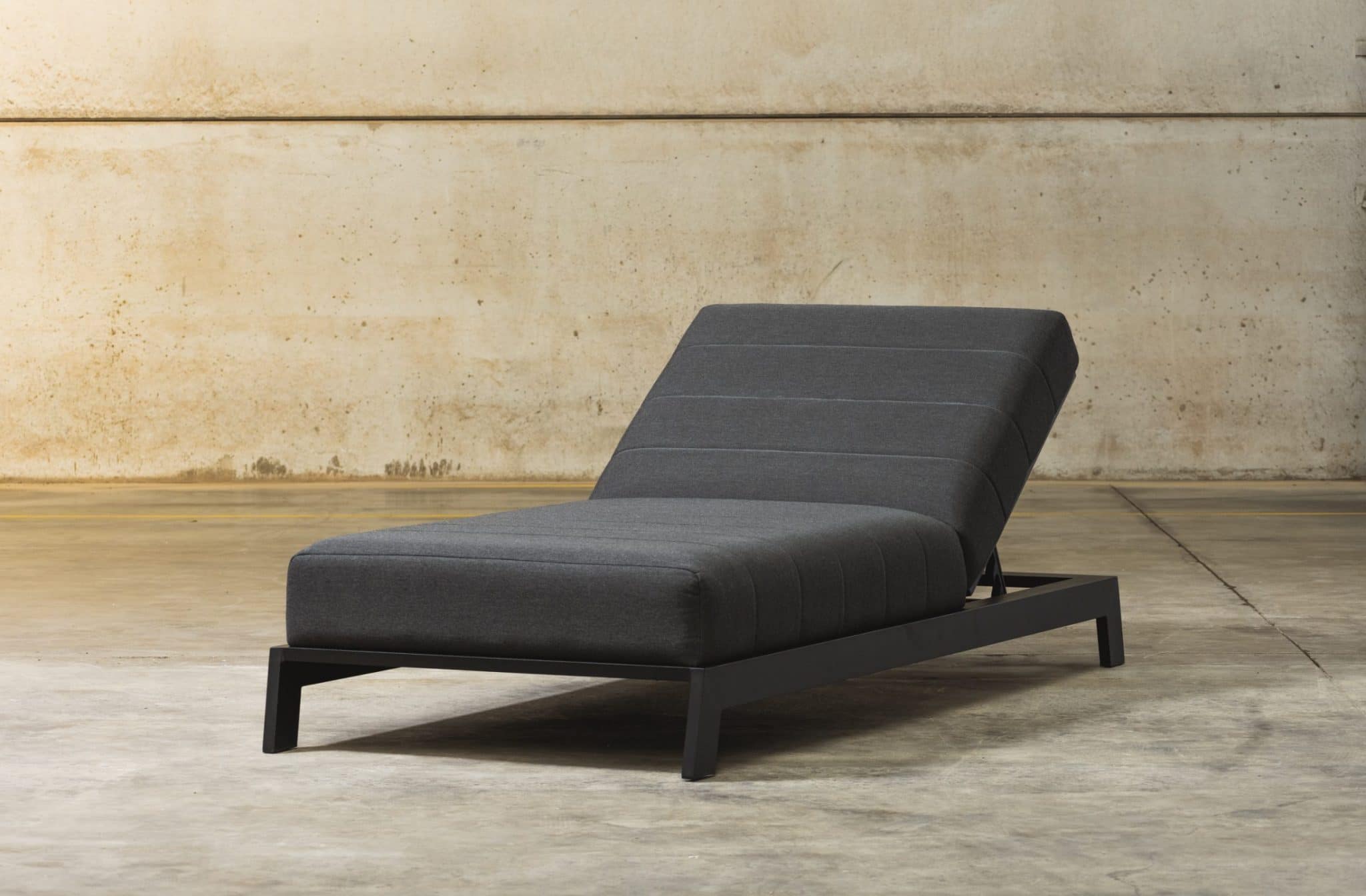 A real eye-catcher is also the Lazy Daisy Lounger. This has a black lacquered steel base and is made of hardwood slats. There are nice options available such as a cushion or a rotating table.