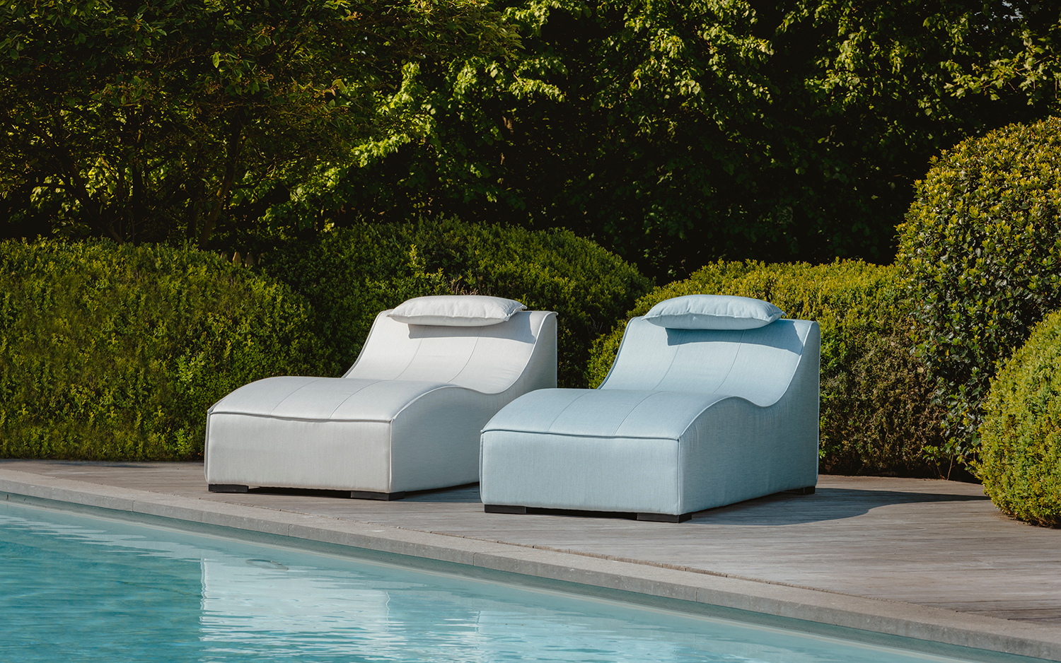 At the pool you can relax in the sun a lounger. Usually you see several sunbeds at a swimming pool. If cushions or fabrics are used for outdoor use, this is known Sunbrella. Our most famous lounger is the Mr. Blue Sky. This sun bed is a beautiful example of design furniture for the pool. We discovered these stylish mattresses for the water in 2015 at the Biennale design fair in Kortrijk.