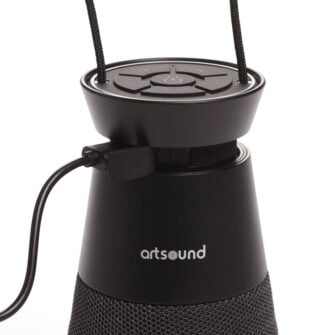 The Artsound Lighthouse multifunctional outdoor portable waterproof speaker with a built-in LED light is a beautiful design. This design speaker is available in black or red.