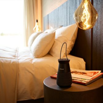DO YOU KNOW : Via the handy KISS function (you hold them against each other for 5 seconds) you can simply connect 2 speakers with each other. Double listening pleasure and an ear-pleasing stereo effect.