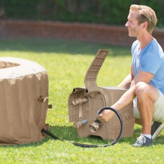Setting up this spa is very easy because there is a very handy manual. You place the spa on the supplied ground sheet, the filter pump then automatically inflates it after connection. In no time it is ready to fill.