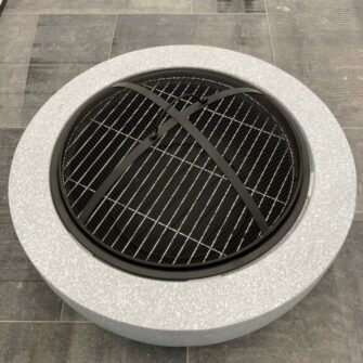 Very cool and fun plastic concrete look fire bowl. Outer diameter 60cm grill grate 40cm. Includes poker, grill grate and spark cap. This modern fire bowl with concrete look a like is made of heat-resistant plastic. The advantages of this fire bowl are the modern design, the light weight and the multifunctional use. This fire bowl is complete including poker, grill, spark protection insert for the fire inside.
