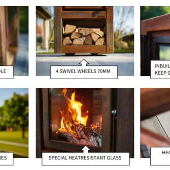 The 3 models of Quaruba outdoor fireplaces with wheels