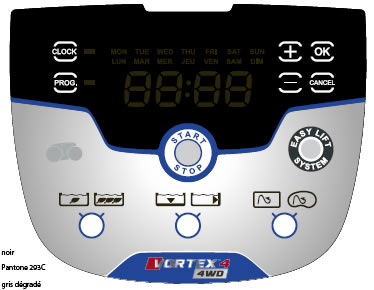 - RV4400 (anciennement Vortex 3.2) – robot de piscine qui nettoie le fond et le mur. 2 cycles « fond et mur – 2,5h » et « fond seul – 1,5h » + NOUVELLE commande + NOUVEAU CHARIOT + SYSTÈME DE LEVAGE