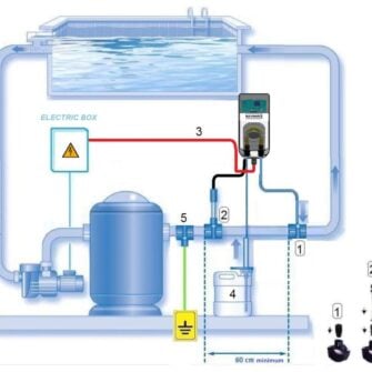 Après avoir placé l'électrolyseur, remplissez-le avec 10 Pastilles de chlore 200g et avec un régulateur, vous pouvez réguler l'apport de chlore dans la piscine.