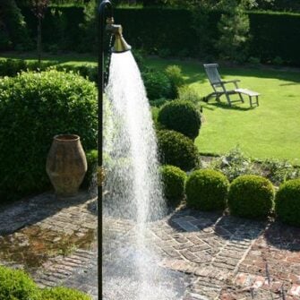 Grâce au mitigeur, vous pourrez prendre une douche chaude, mais aussi froide par temps chaud. Vous pouvez placer cette douche au bord de la piscine ou juste dans le jardin.