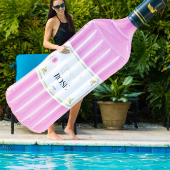Matelas gonflable bouteille rosée. Cette chaise longue originale pour l'eau attire tous les regards dans la piscine. Merveilleusement grand et super cool. Comprend un porte-gobelet. Dimensions 236 x 71 x 23 cm