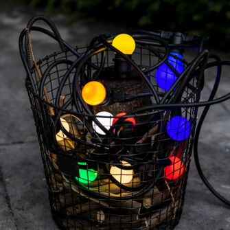Lampe de fête, guirlande LED câble barbelé E27 couleur de lampe de 1W pour notre câbles barbelés guirlandes LED. Emballé par boîte de 5 pièces. LED standard G45 (taille balle de golf) avec culot E27. Ce sont de petites lumières rondes au lieu de la forme typique de poire, ce qui les rend encore plus amusantes. Ils sont fabriqués à partir de Plastique et IP44, étanche aux éclaboussures lorsqu'ils sont vissés dans notre guirlande LED fil barbelé. Le support fait un joint étanche avec l'ampoule. Les lampes sont colorées dans la masse, ce qui en fait une belle lumière de couleur uniforme donner. Lampe LED 1W seulement, idéale comme créateur d'ambiance avec un Faible consommation.
