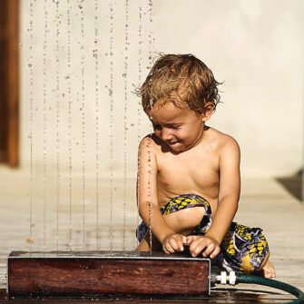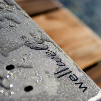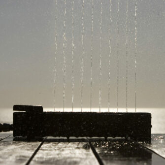 L'eau du WellWell rayonne de cette douche extérieure de bas en haut