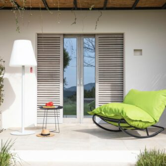 Hierop plaats je vervolgens jouw Fatboy Original en klaar is kees. Deze schommelstoel is geschikt voor buiten én binnen. De stoel is gemaakt van waterafstotend materiaal.