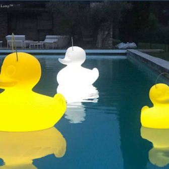 Deze grote design badeend lamp werd ontworpen door Marke Newton, een Britse artiest uit Liverpool. Deze artiest is gekend voor zijn vele posters en tekeningen en de co-founder van Goodnight Light. Er is ook een kleine DUCK DUCK S.