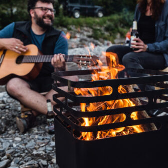 Vuurkorf Cube Multifunctioneel zwart is een elegante vuurkorf met veel functies. Hij kan gebruikt worden als vuurmand, grill of bijzettafel.