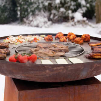 Deze Orion classic barbecue met vuurschaal is verkrijgbaar in het roest en in het zwart als Orion Classic Black Plancha