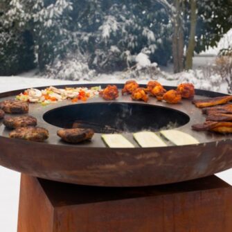 De vuurschaal BBQ Orion is het alternatief voor de Ofyr of de White fire Barbecue. Deze ring barbecue op hout met een vuur in het midden en de bakplaat rondom is een echte top BBQ. de gezelligheid van het houtvuur, in combinatie met een bakplaat BBQ is echt een zeer aangename belevenis.
