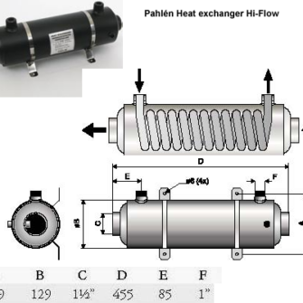 De warmtewisselaar horizontaal, is exclusief koppelingen, circulatiepomp en aquastaat. Er is een duidelijke instructietekening voor montage. De werking is eenvoudig en betrouwbaar. Er is ook een verticale versie van deze warmtewisselaar : Warmtewisselaar verticaal